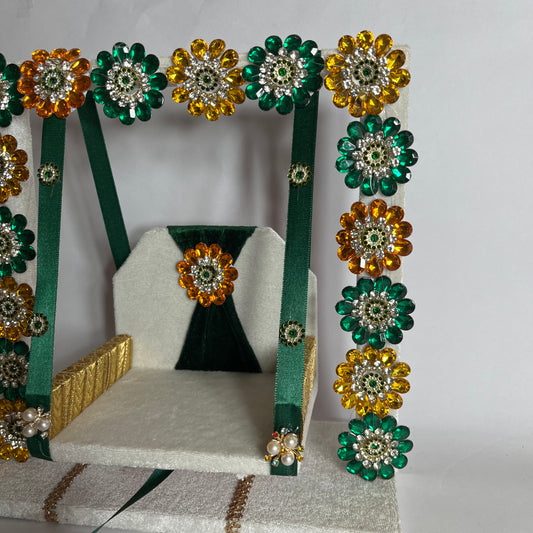 Thakur Ji Green Decorative Stones Jhula