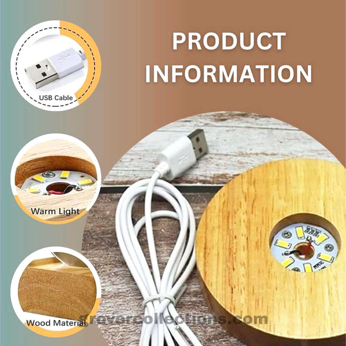 1 × Wooden LED Base with USB Cable